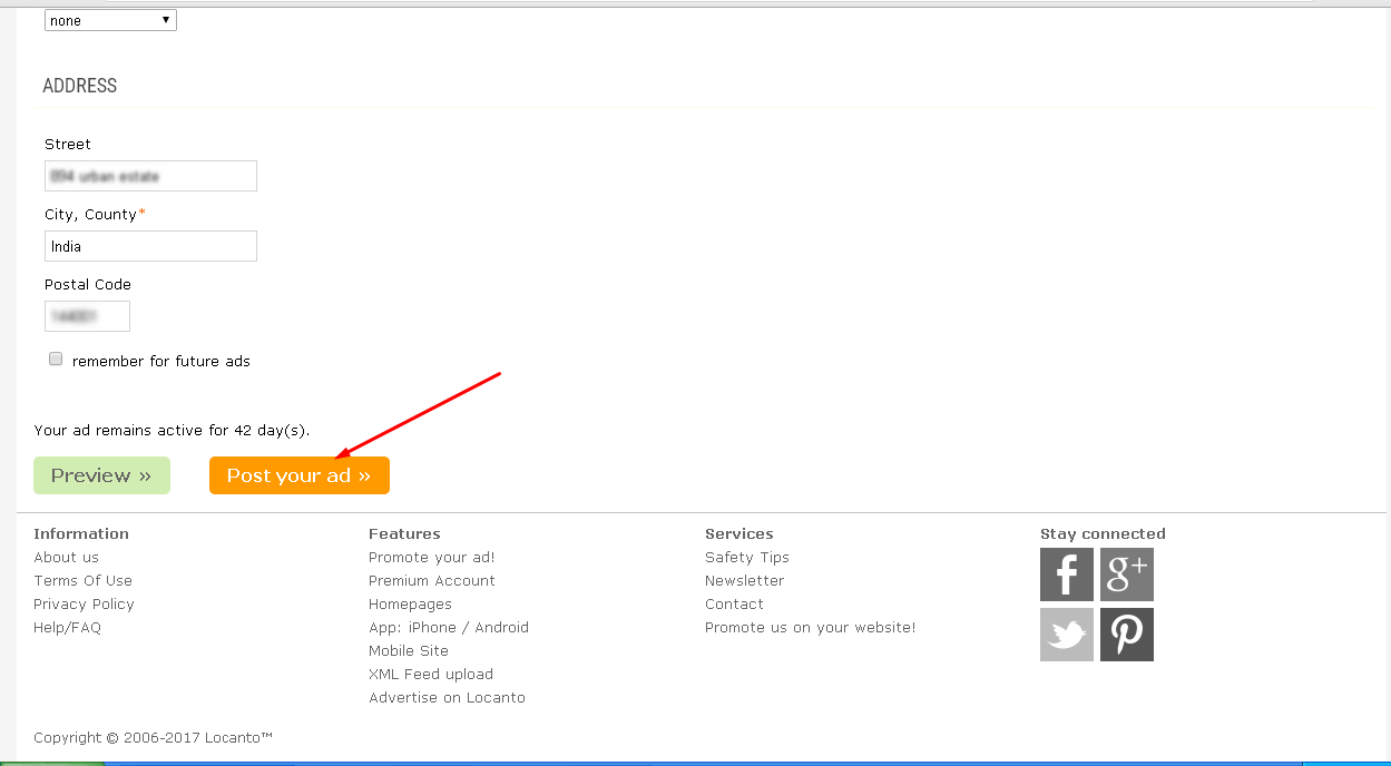 Then यहाँ Website का Address Enter करें Next यहाँ अपना Address Fill करने के बाद Post Your Ad पर Click करें Then यह Message Show होगी कि अपनी Ads को Post करने के लिए अपनी Email ID Confirm करें उसके लिए पहले अपनी अपनी Email ID Open करें जो आपने Ad Post करते समय भरी थी और देखें यहाँ locanto की तरफ से एक Mail आई है इसे Click करें Then यहाँ Please Confirm email Address पर Click करें तो आपकी Website की Ads locanto Website पर Post हो जायगी इस तरह आप बाकी की Website पर भी अपनी Ads को Post कर सकते है|