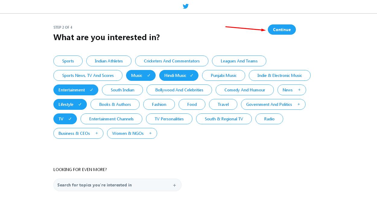 Then यहां Username Select करें जो कि आप बाद में भी Change कर सकते हैं और Then Next पर Click करें | फिर यहां Lets go पर Click करें | फिर यहां जो भी आपके Interested Areas हैं उसे Select करें then Continues पर Click करें | Then No Thanks पर Click करें | Then यहां जिन-जिन लोगों को आप Follow कर रहें हैं वह Show हो जायेंगे
